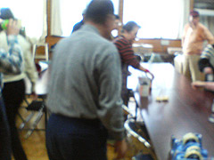 NTTのOBによる、燭台の蝋を削り取る作業と