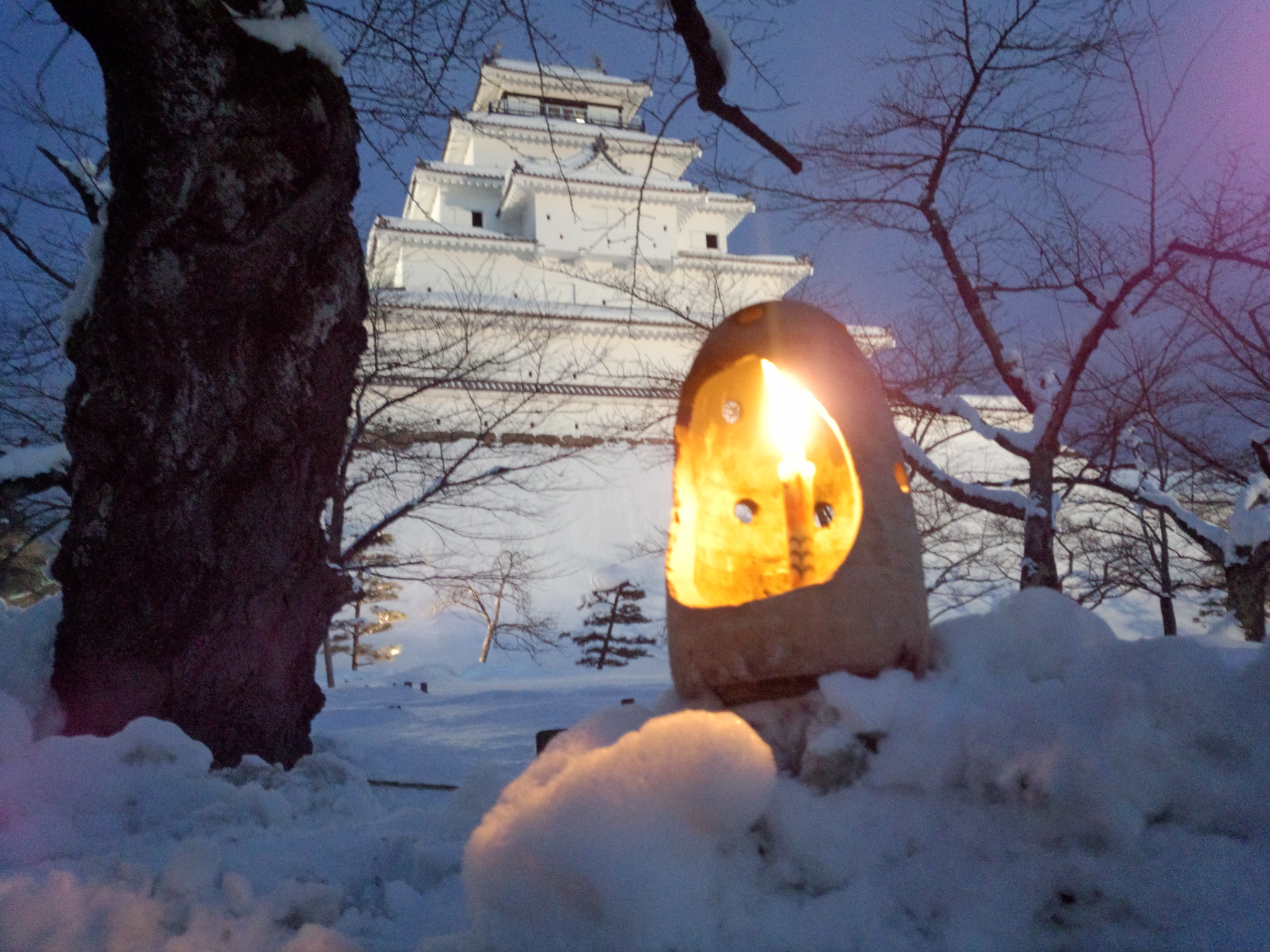 鶴ヶ城と絵ろうそく