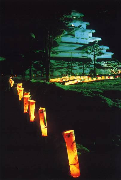会津絵ろうそく祭り〜2004年の様子〜/城に祈る