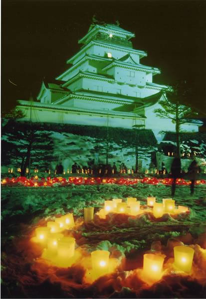 会津絵ろうそく祭り〜2004年の様子〜/燭台と鶴ケ城