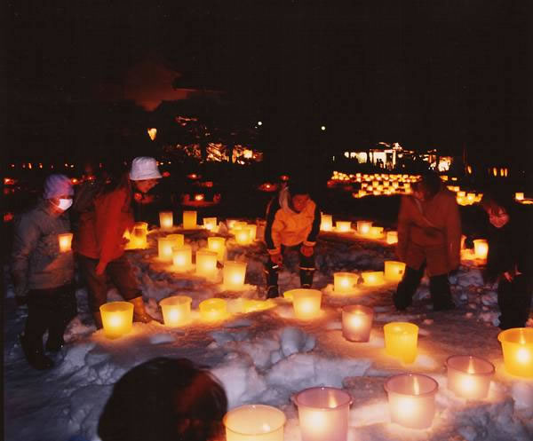 会津絵ろうそく祭り〜2004年の様子〜/雪ほたるに映える古城
