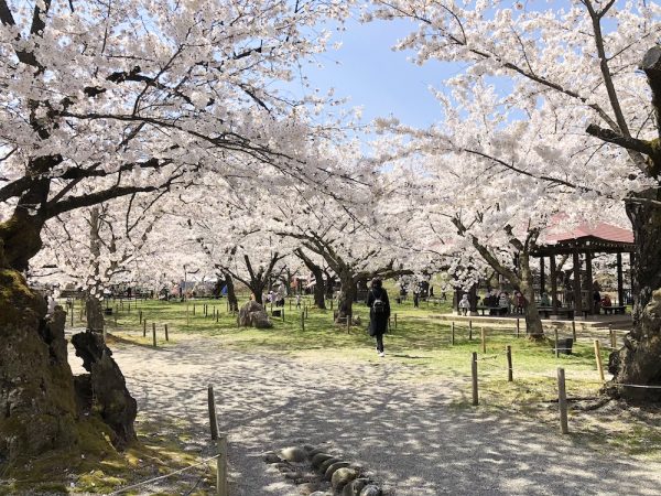 鶴ヶ城公園はほぼ満開で、日陰になっている場所はまだ蕾が所々みられます。