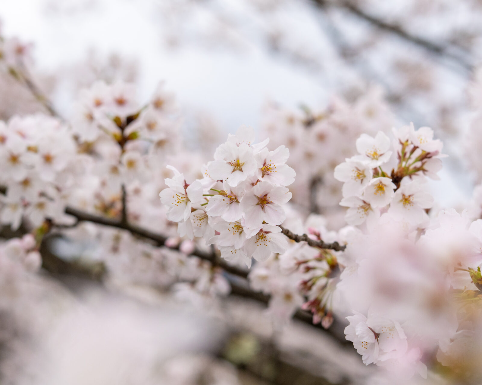 気温は約11℃とひんやりした曇り空の一日で、体感温度は6℃ほどに感じられます。重たく垂れ込めた空は今にも雨を予感させ、そんな中でも桜は静かに佇み、やわらかな花びらが灰色の景色の中でやさしく映えています。