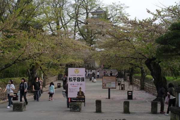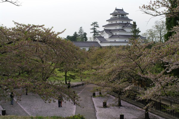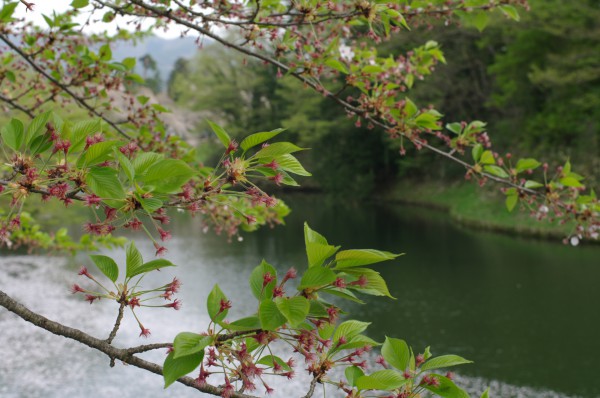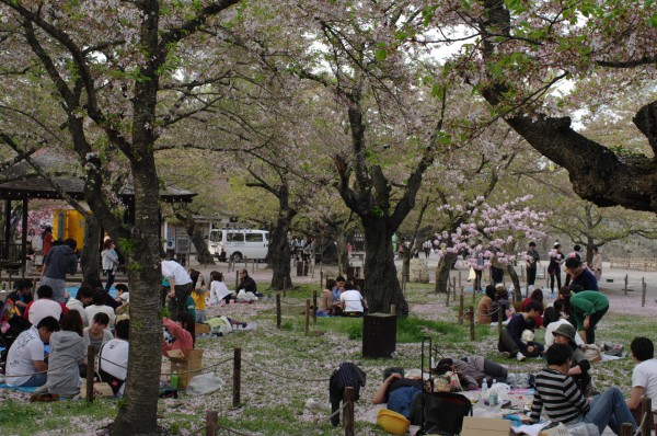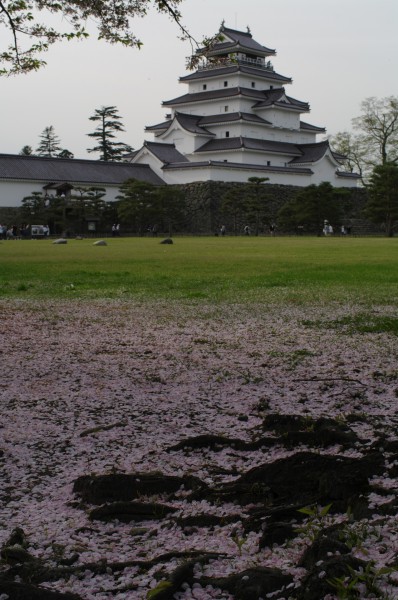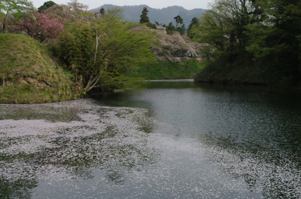 Today was again fine weather but rather stormy. The cherry blossom is almost over and most of the petals have been blown away by the wind. The white petals laying on the grass look almost like snow from the distance. Also the many petals floating in the small pond around Tsurugajou look like a sea of Sakura. Some rarely cherry trees have still all their blossoms but most of them are gone. I hope everybody enjoyed this beautiful weekend!
