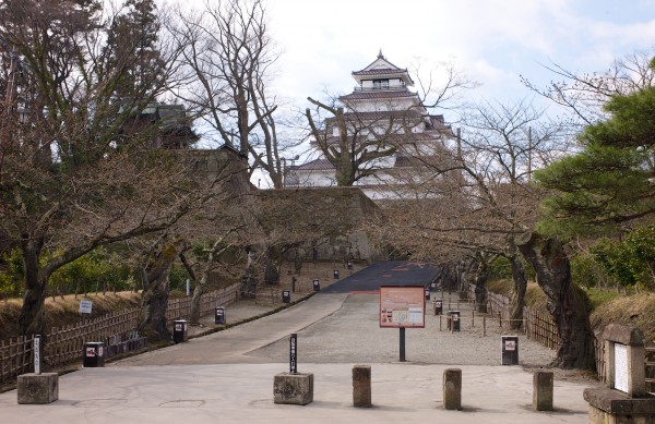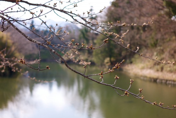 お城は晴天に恵まれています。桜はまだ開花していません。