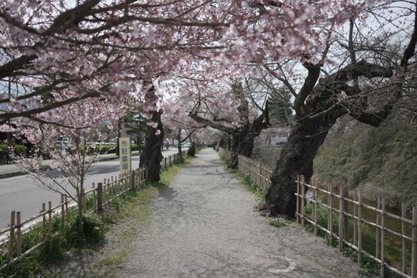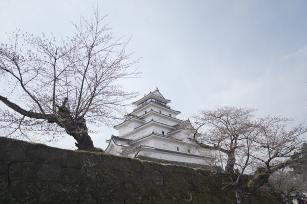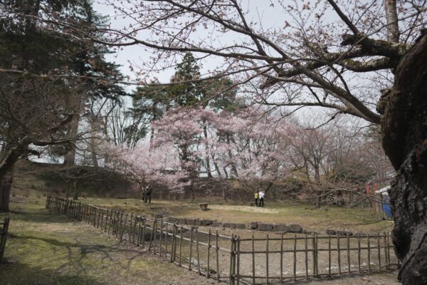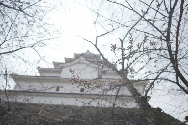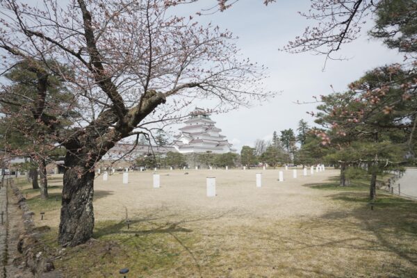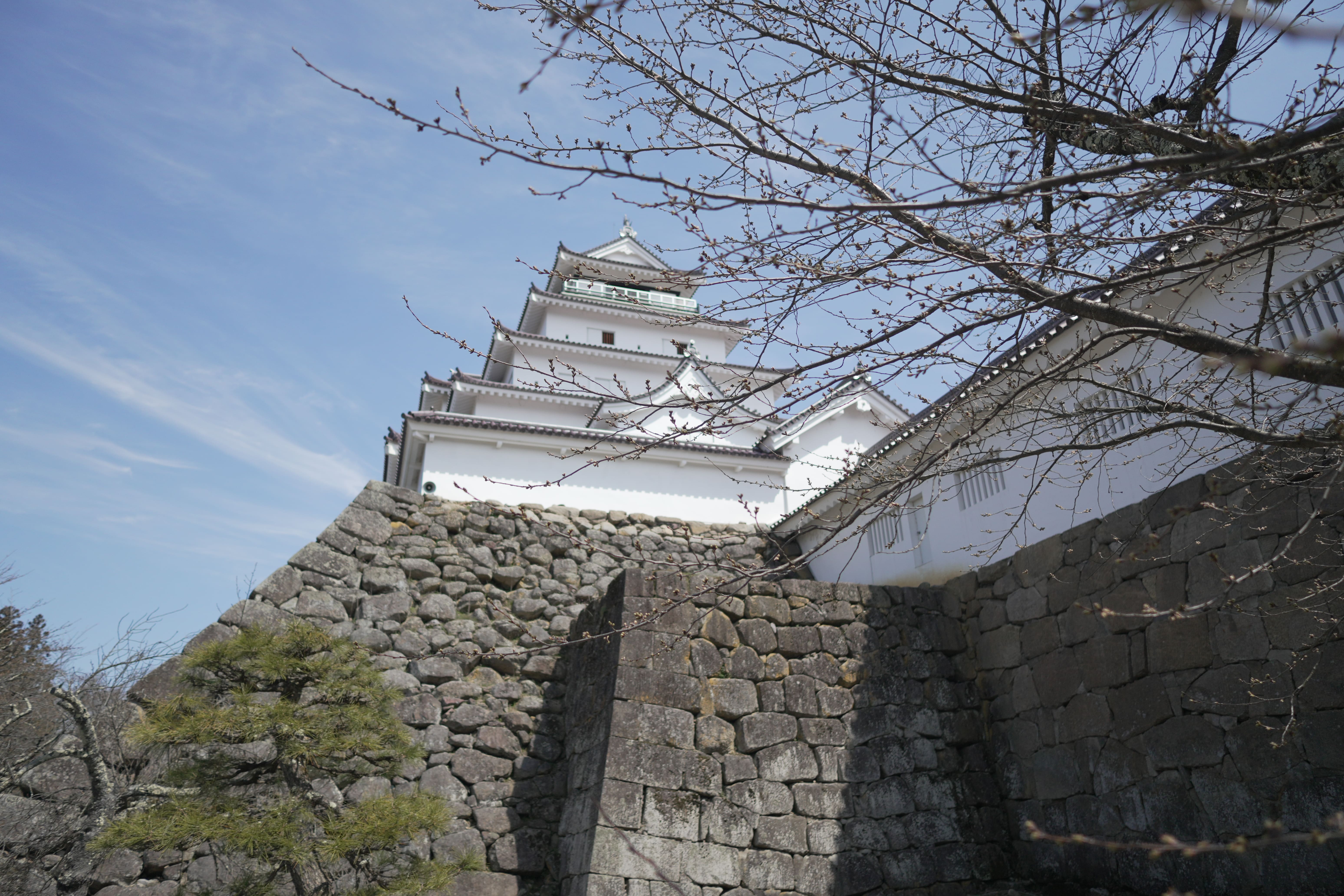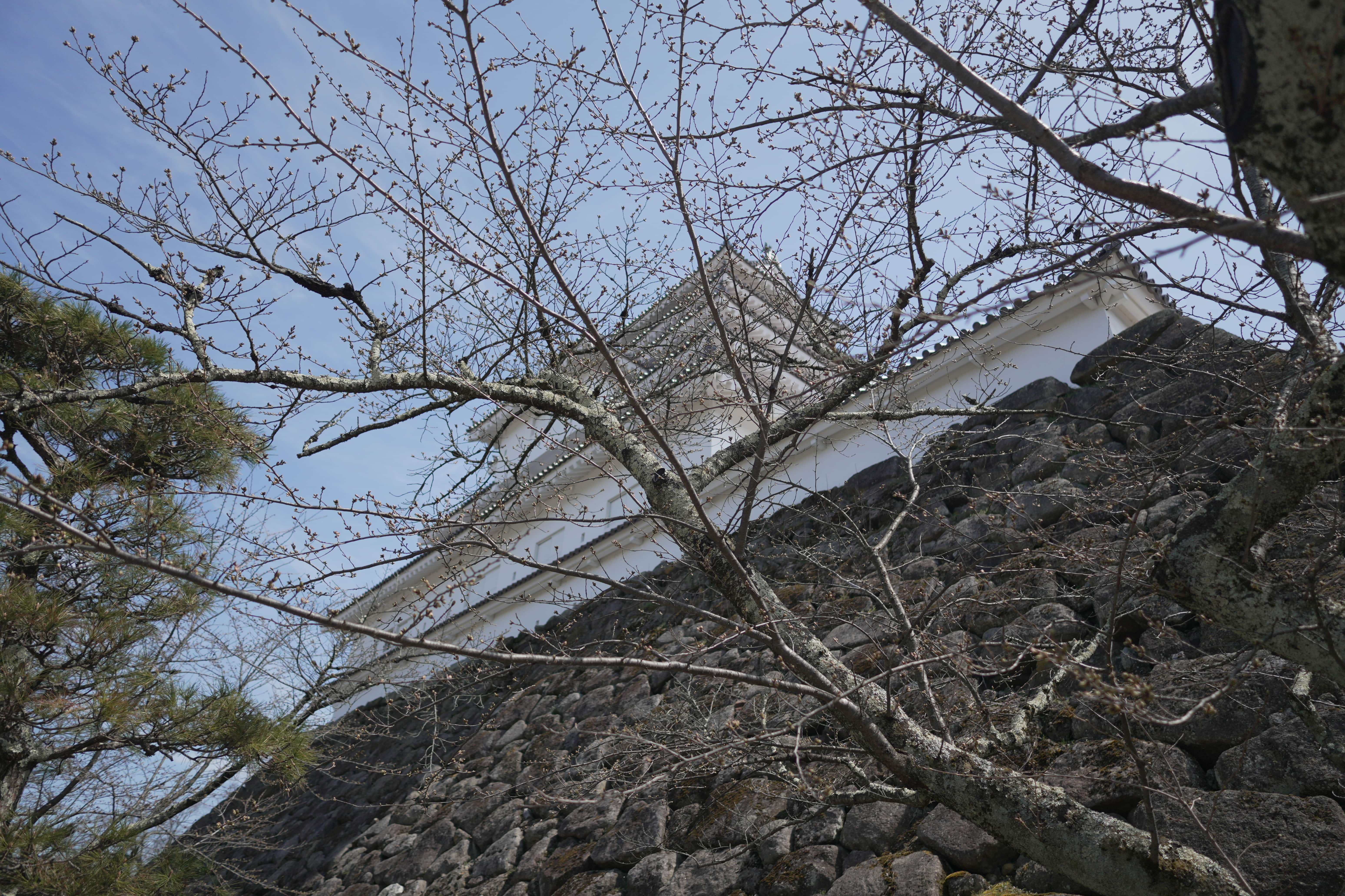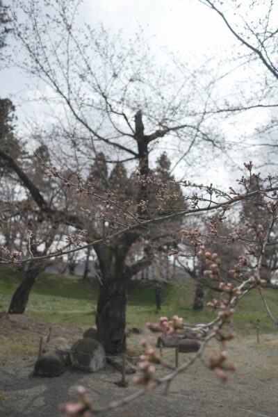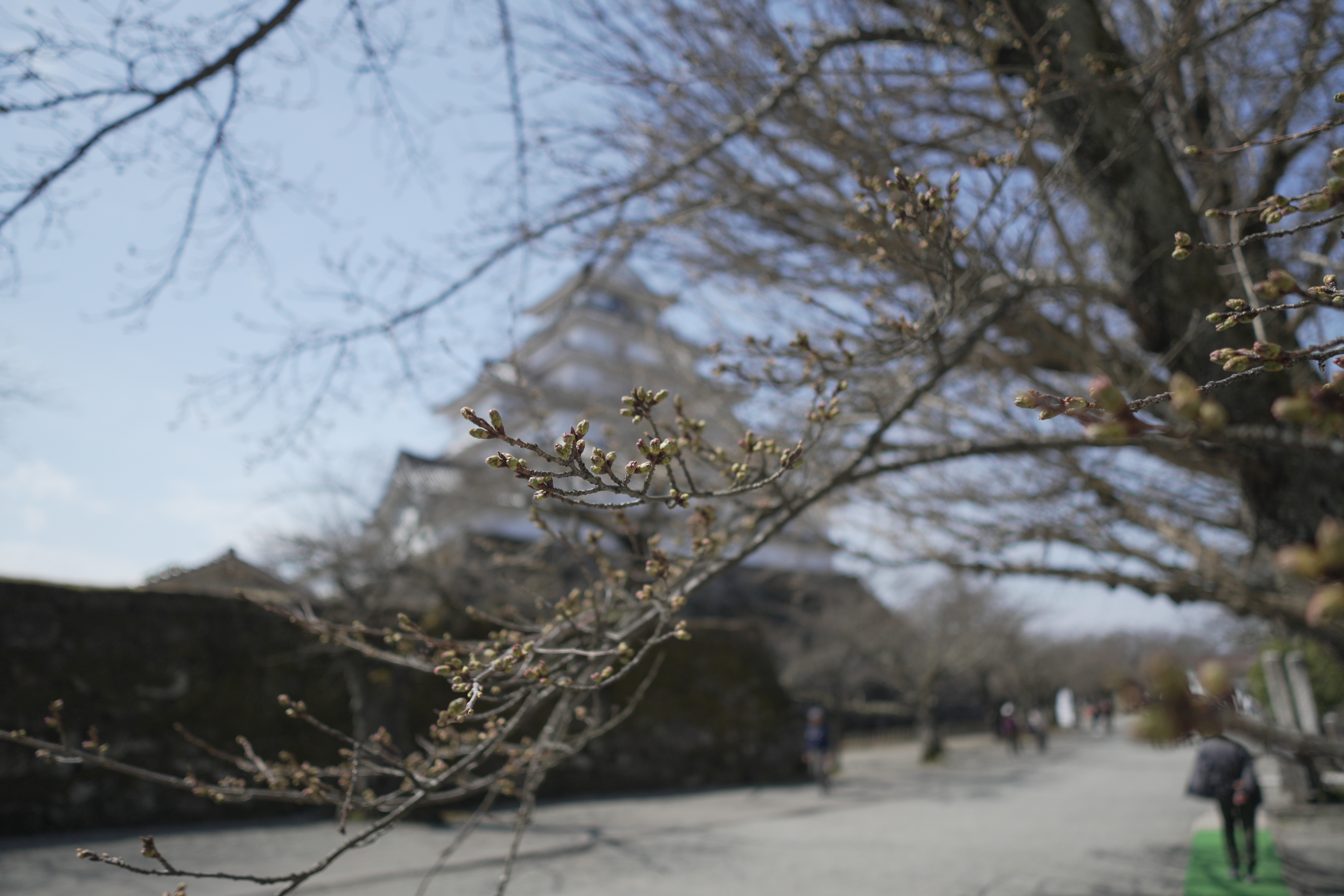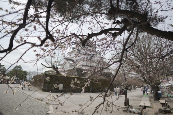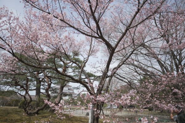 On this sunny day at 12°C, almost every Cherry blossom at Aizu castle is blooming.