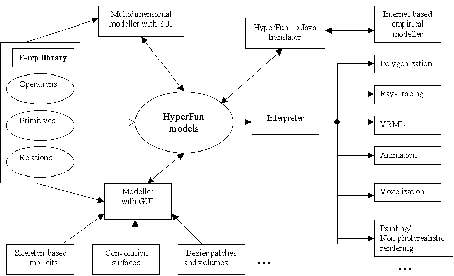 Different types of user interfaces should be supported including symbolic, graphical, and haptic. Eventually, the interfaces serve to create HyperFun models.