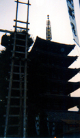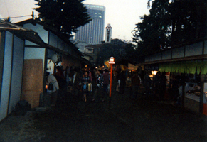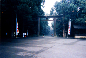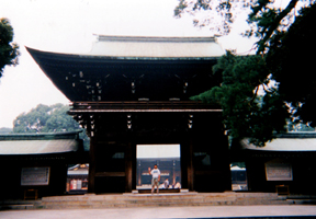 | On Oct. 15, 1998 Takada and I headed out to see the Meiji-Shrine. Before we took off in that direction we walked along the busy streets of Tokyo. Looking at the various shops along the way. We had to grab a bite to eat too before we made our sojourn to the famous shrine. So we stopped and ate Sukiyaki at one of the local (what I call a mall) shop, my first time I might add. It was SOOO delicious (OISHI)! (you can check out more about the Sukiyaki on my Food page) |