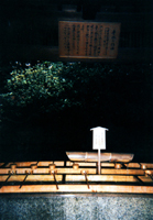| We came to another clearing along the winding cobblestone trail. This section of the park had a huge pond in it. There were goldfish that occasionally poked their heads through the surface of the water. There was a bridge stretching over the body of water and upon this bridge we saw two young lovers kissing in the moonlight. We moved on without disturbing them. We left the park soon after that. The park was beautiful to me, but it also taught me an important lesson. The grass is NEVER greener in another country!!! This was one of the first experiences that shattered my fantasy like idea of Japan. |
