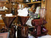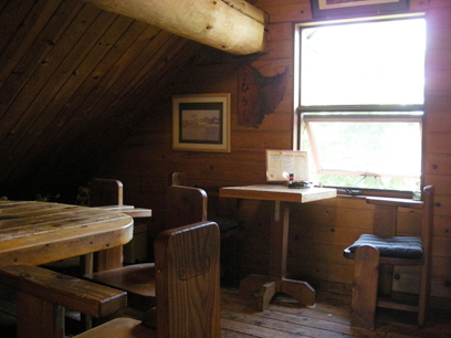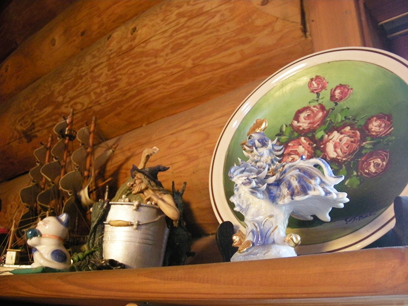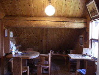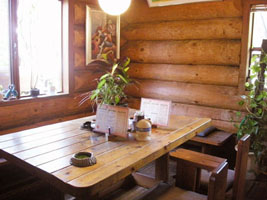 お店の中はまるで森のなかにあるログハウスのよう!木製のテーブルや椅子など、木の温かみを感じます。 壁や窓際にはかわいい小物や絵画が多く飾ってあり、お店にいるだけで楽しい気分になってしまいます。
