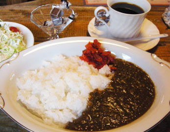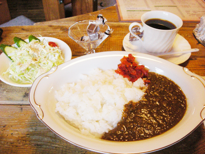そして、カレー。「全部店で作っているからおいしいんだ」と、マスターが話してくださいました。 程よい辛さでご飯が進みます!量もたっぷりあるのがうれしいですね♪ 一口チョコのサービスにもまた、幸せになってしまいました。