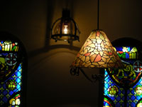 写真のように、ランプで照らされた店内でくつろぐことができます。