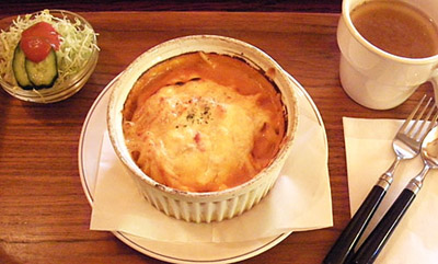 出来立てのグラタンは、トロトロのチーズが病みつきになります!そしてグラタンの下にはスパゲッティが隠れているんです。
