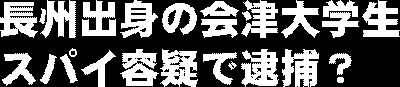 そんななか、会津大学に在籍の学生がスパイ容疑で逮捕された。未成年のため氏名は公表できないが、この学生は現在2年生で、長州出身である。直接の逮捕の原因は大学構内の違法駐車とのことだが、以前からCIAとの関係が指摘されており、別件逮捕された。友人の話しによれば成績も優秀で、人付き合いもいいが、ただ会津の郷土料理である『こずゆ』を食べるのをかたくなに拒否したという話しもあるようだ。