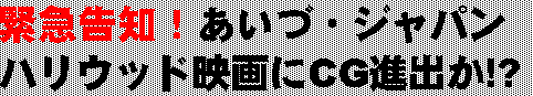 ![]() 4月1日(会津発) 本日、福島県会津若松市にある有限会社あいづ・ジャパン(代表:山寺純氏)でハリウッドの大物監督ジェームス・カメロン氏を迎え、制作費300億をかけ、最新CGが駆使される映画「CAMETANIC(カメタニック)」の制作記者会見が行われた。本日で法人設立1周年を迎えるあいづ・ジャパンだが、日本で初めてコンピュータ理工学部が設置され、教員の大部分が外国人教員で構成される会津大学の学生を中心に活動を続けており、最近では数多くのCG作品を発表しており今回はそれがハリウッドでも高く評価されたようだ。あいづ・ジャパンでは今回の映画で実写では撮影不可能なCG制作を一手に手掛ける。 |