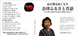 会津には数多くの伝説昔ばなしがあります。それは人々の生涯の中に解け込み、昔ばなしとして伝えられてきました。今の世代、これからの世代に語り継いでゆきたいと思います。心に残るあいづのふる里ばなし思い出にぜひ聞いてくなんしょ。