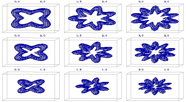 The HyperFun model of the bi-directional metamorphosis is shown in Fig. 8. A 2D spreadsheet presented in Fig. 9 is the most adequate visual representation of this 5D object. The following assignment of the multimedia types defines such spreadsheet: