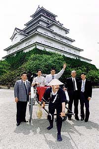 商品価値の高い俥(1台、200万以上)ですので、むやみに増やす気持はありません。台数が多くなればなるほど力俥の価値がなくなってしまうのです。松五郎さんの引く力俥で会津を楽しみたい、ヒゲの中年俥屋さんです。お客様方に対して御城をながめながら、偉そうな説明をし、商売気のない、自分で自分の人生を楽しんでいるケチな男です。